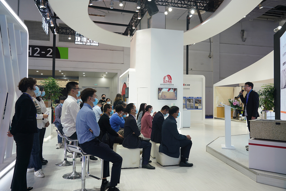 在眾多展位中,臥牛山(WONEWSUN)展位脫穎而出,其高質(zhì)量的創(chuàng)新產(chǎn)品與強有力的技術(shù)優(yōu)勢備受關(guān)注,吸引了大量參展人員及媒體駐足詢問。此外,臥牛山(WONEWSUN)聚焦碳達(dá)峰、碳中和與建筑業(yè)的有效銜接,緊扣展會主題及本土化保溫政策進(jìn)行《上海新政后墻體內(nèi)外保溫裝飾推薦》專項宣講,為該政策提出合理解決方案,并展示應(yīng)對此政策的節(jié)能、保溫、裝飾相關(guān)產(chǎn)品,詮釋“韌性城市,低碳生活”。